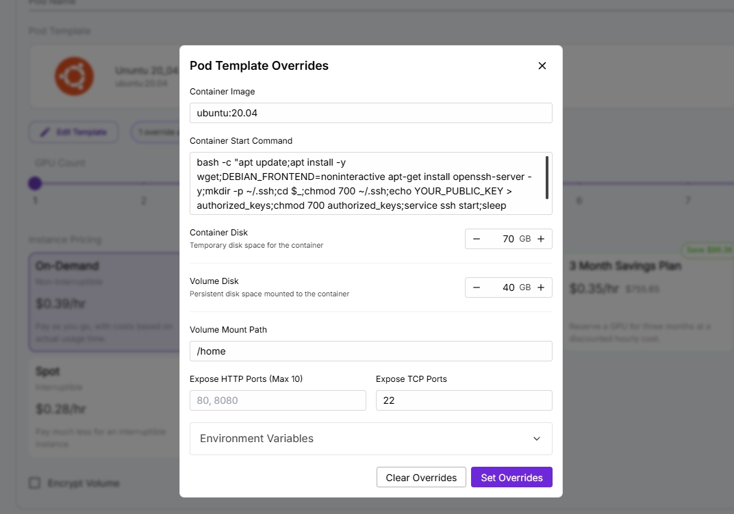 Runpod often provides quick templates for various setups. You have two main approaches: