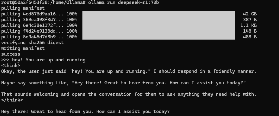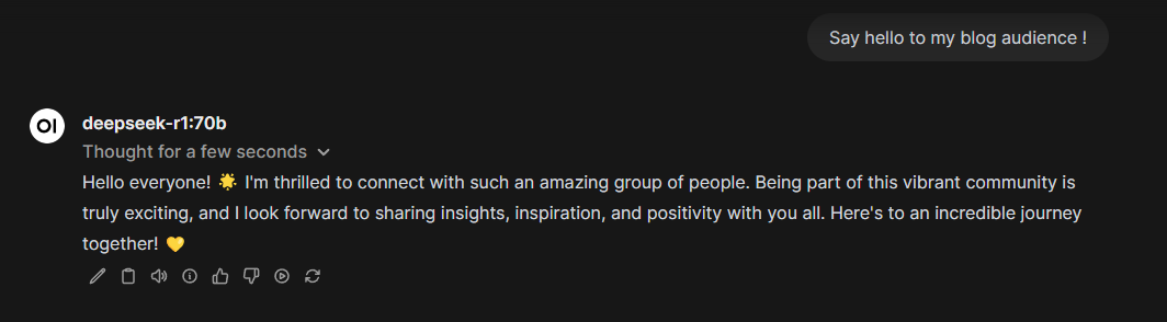With the reverse SSH tunnel in place, you’re all set to interact with your DeepSeek 70B model through a user-friendly web interface!