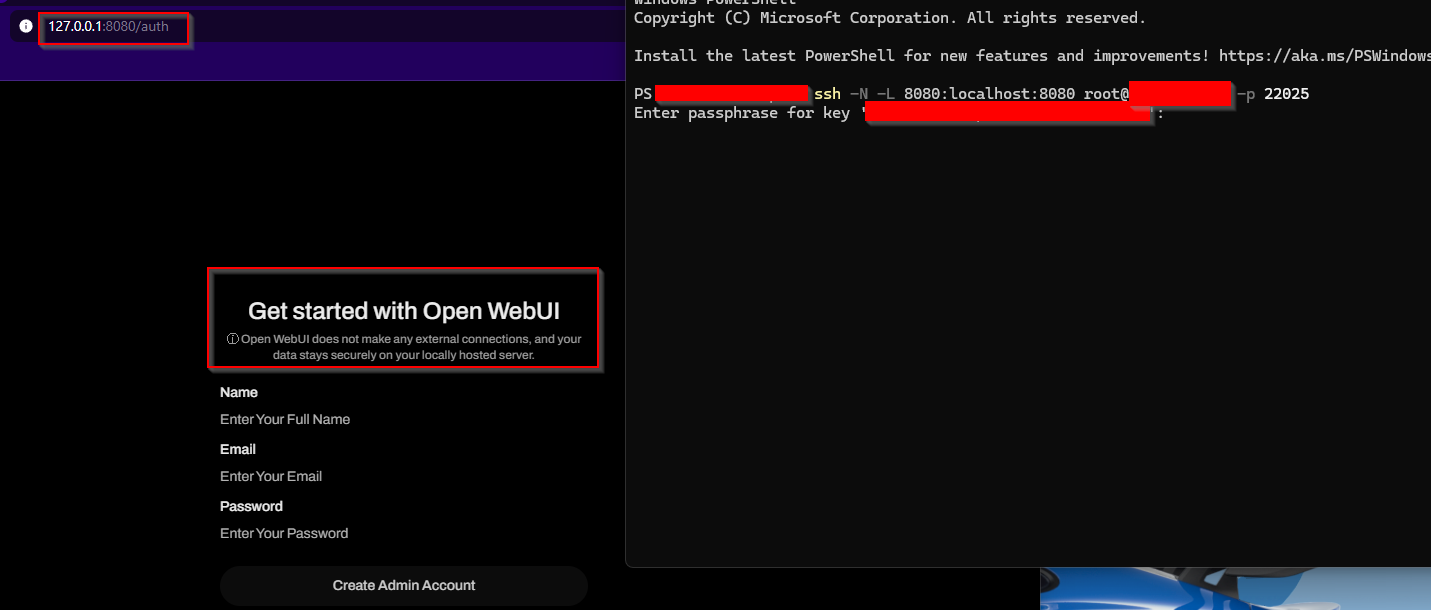 - Open a terminal on your local machine, paste the SSH command, and press Enter.